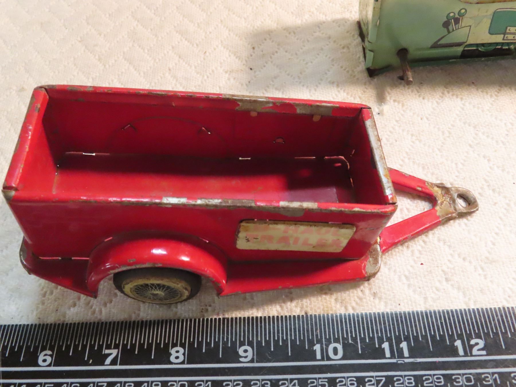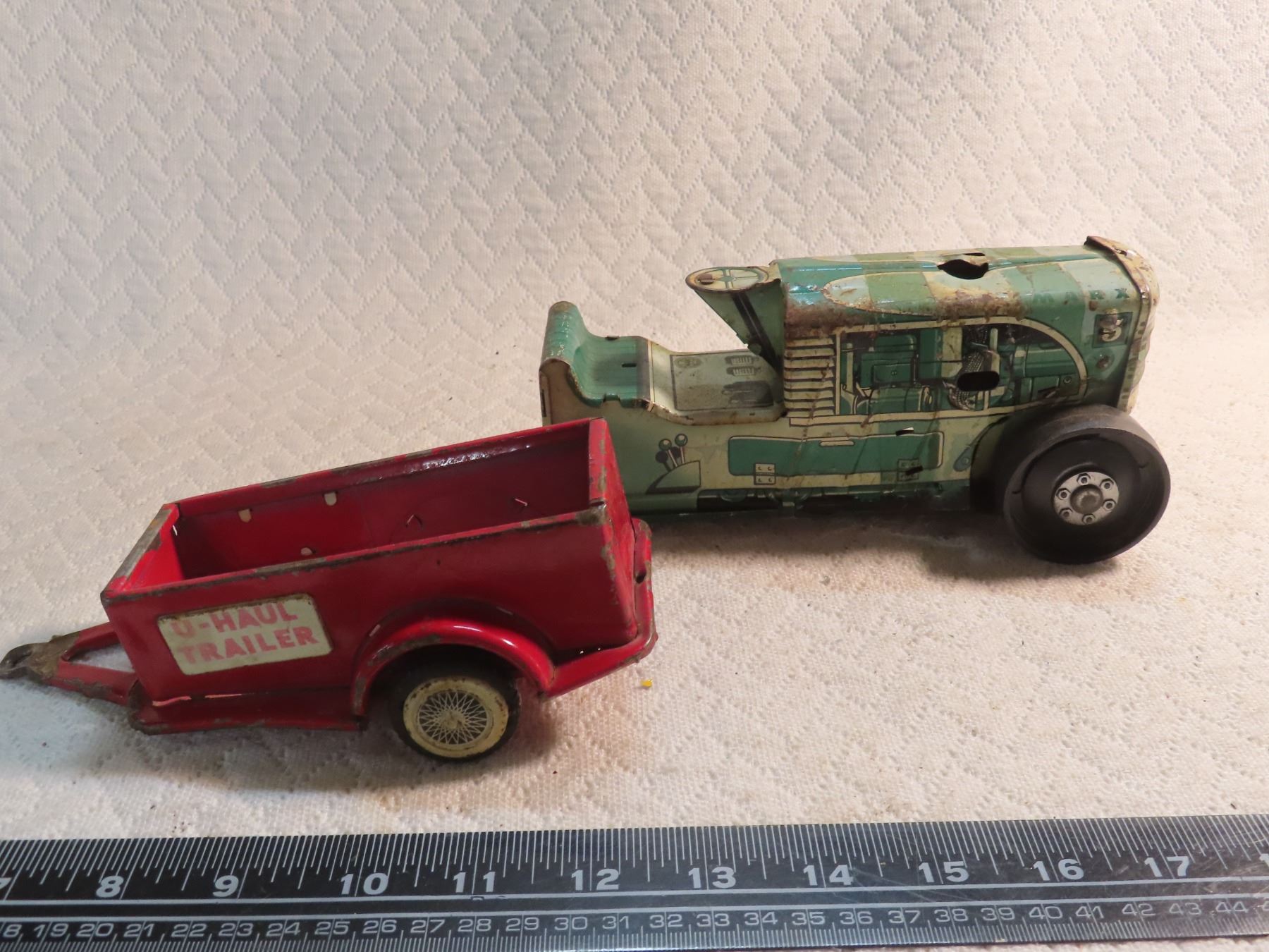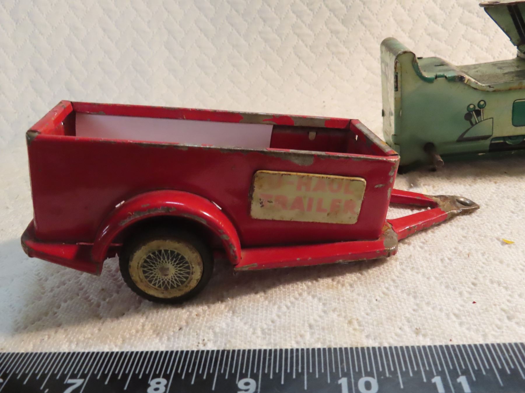 vintage no.5 Marx wind up tin car, rare U-Haul trailer
