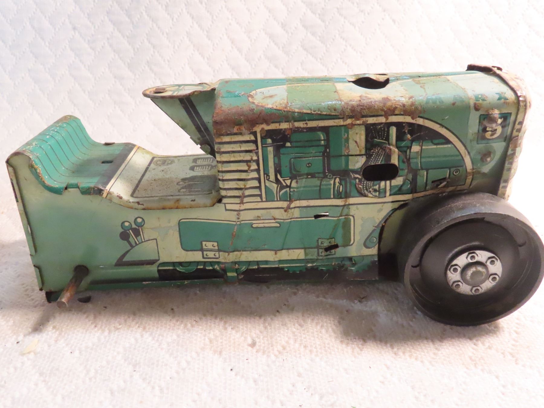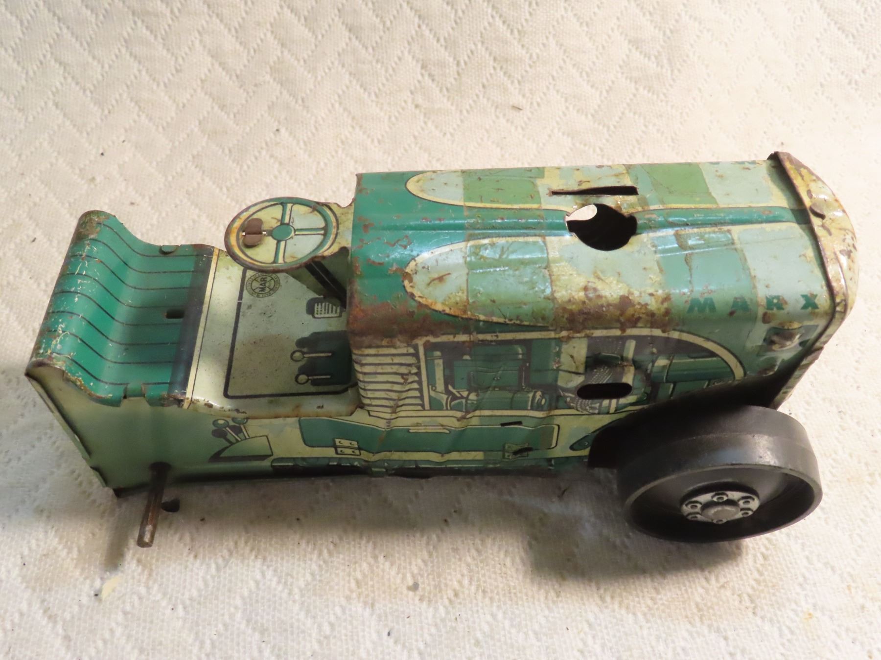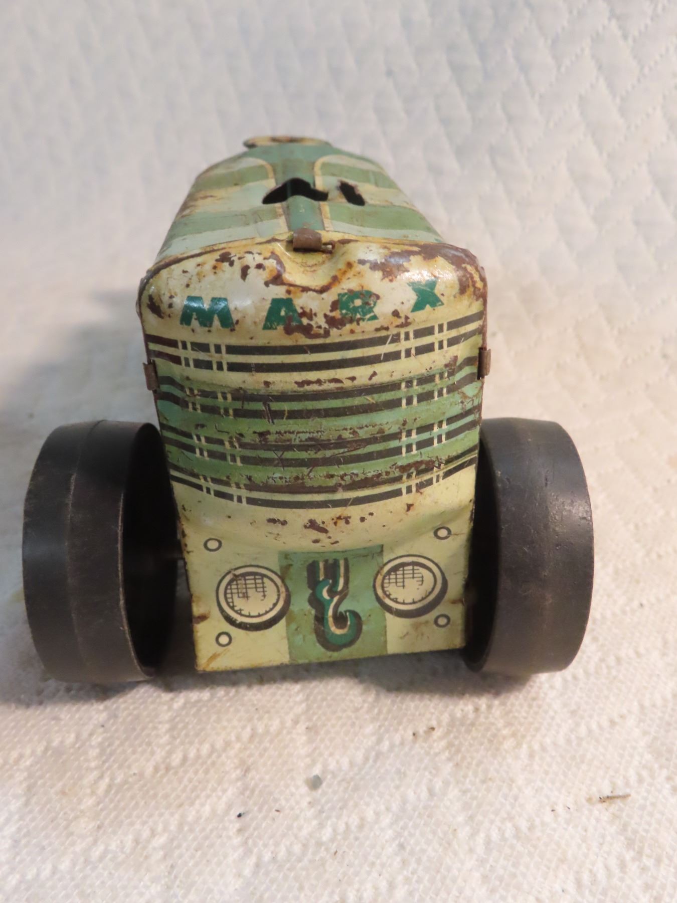 vintage no.5 Marx wind up tin car, rare U-Haul trailer