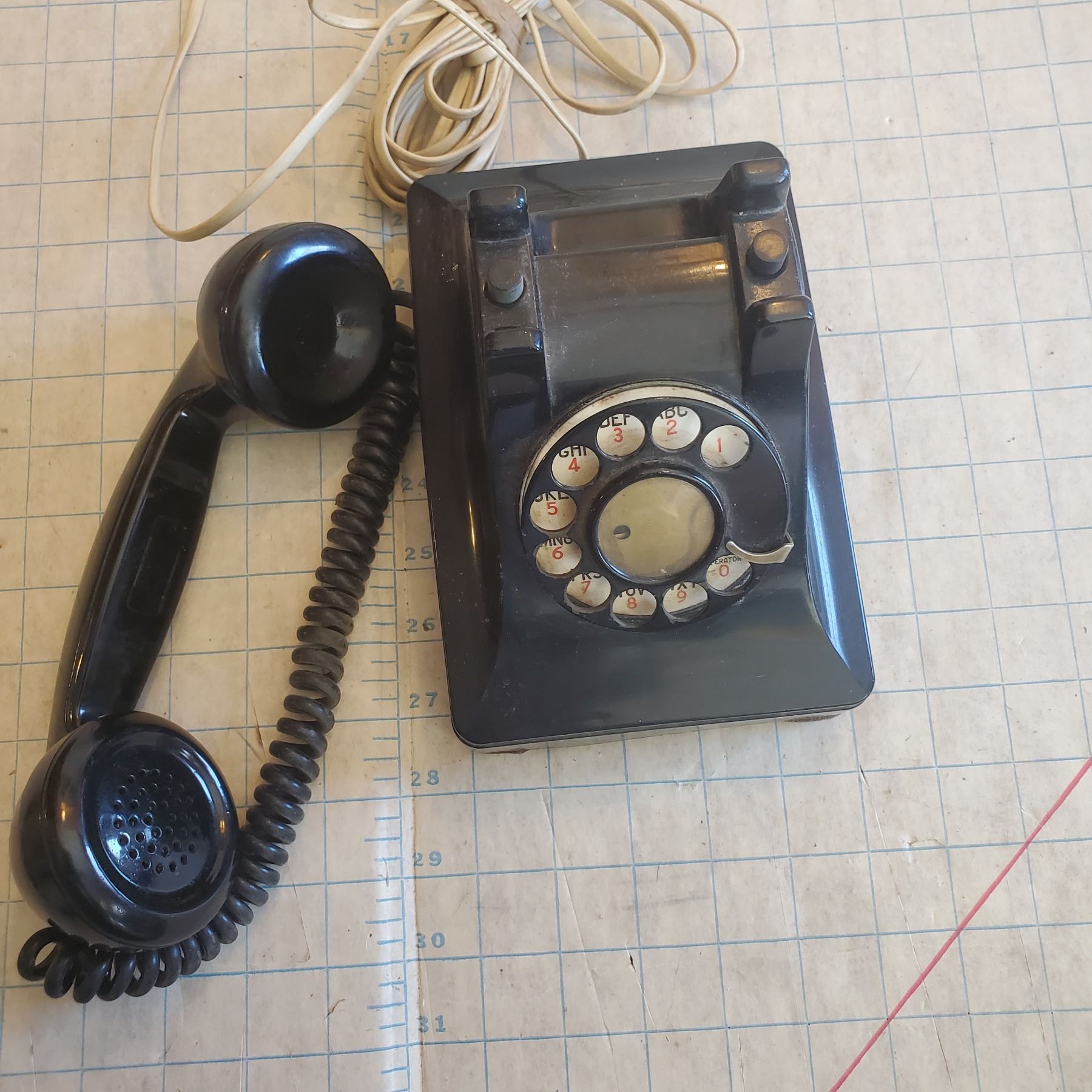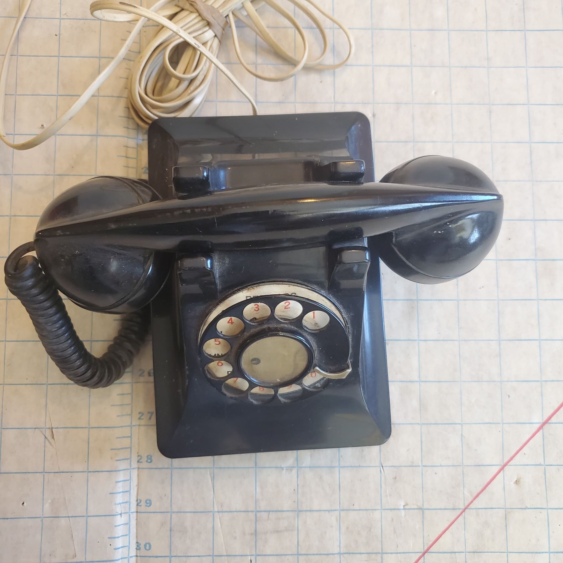 vintage phone. Original Bakelite countertop Rotary landline telephone vintage phone. Black