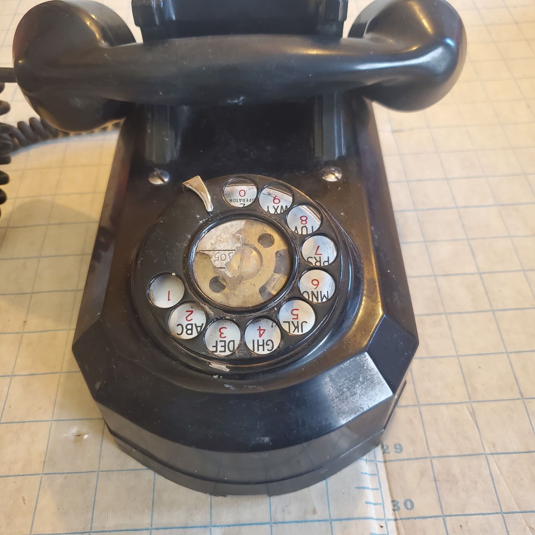 vintage phone.Original Bakelite wall mount Rotary landline telephone Black (not working)