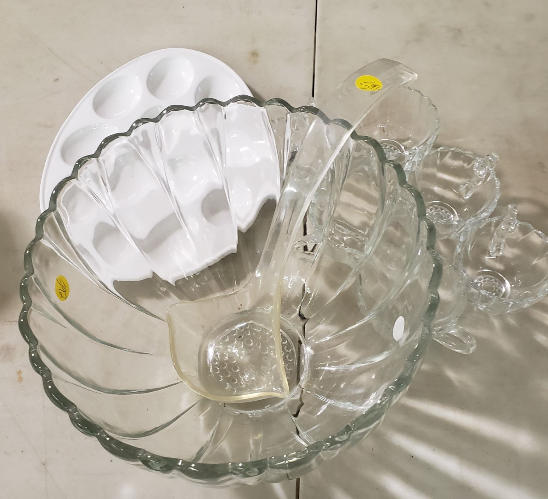 vintage punch bowl set glassware with bowl, spoon and glasses/cups ( from Estate)