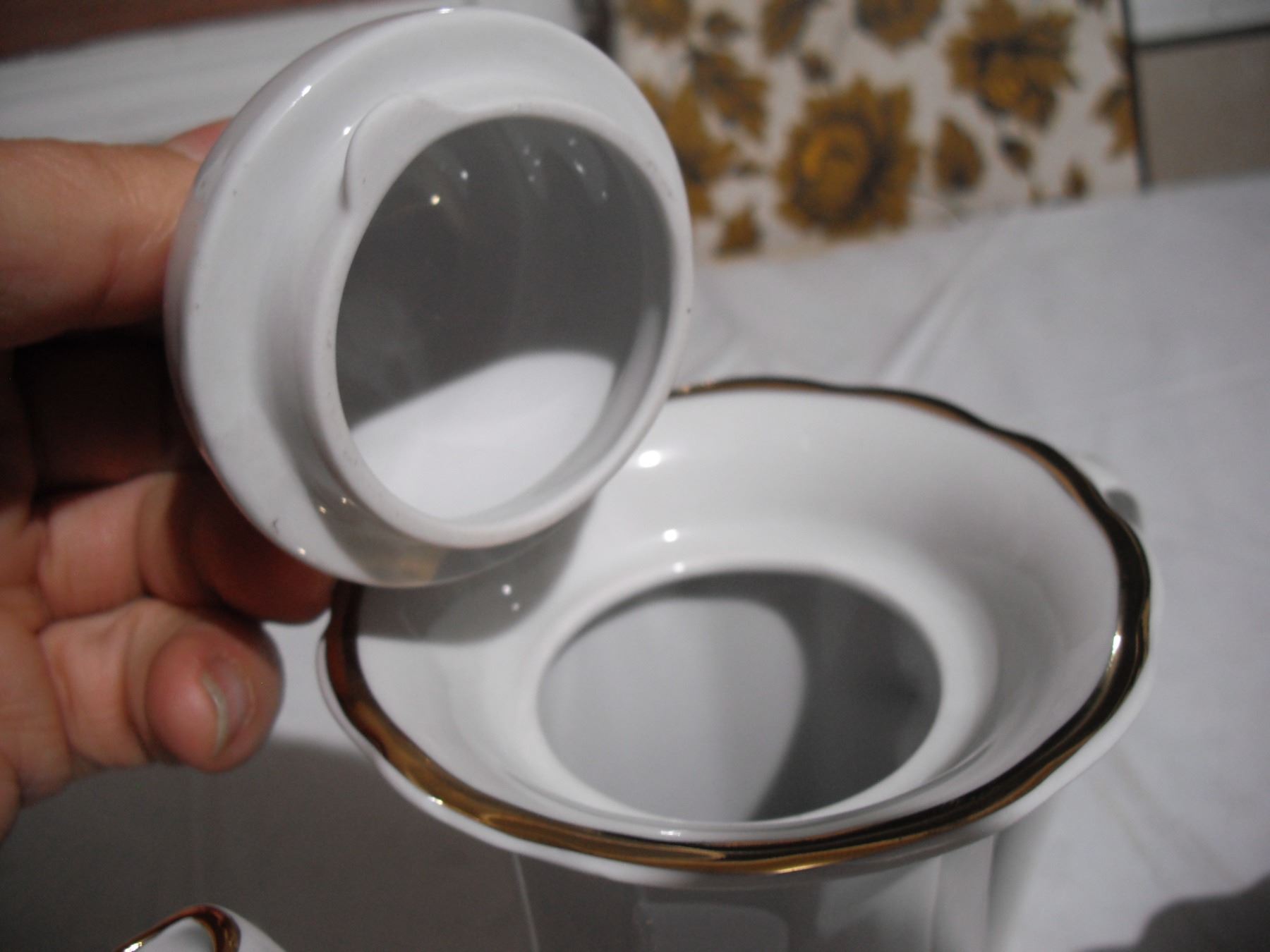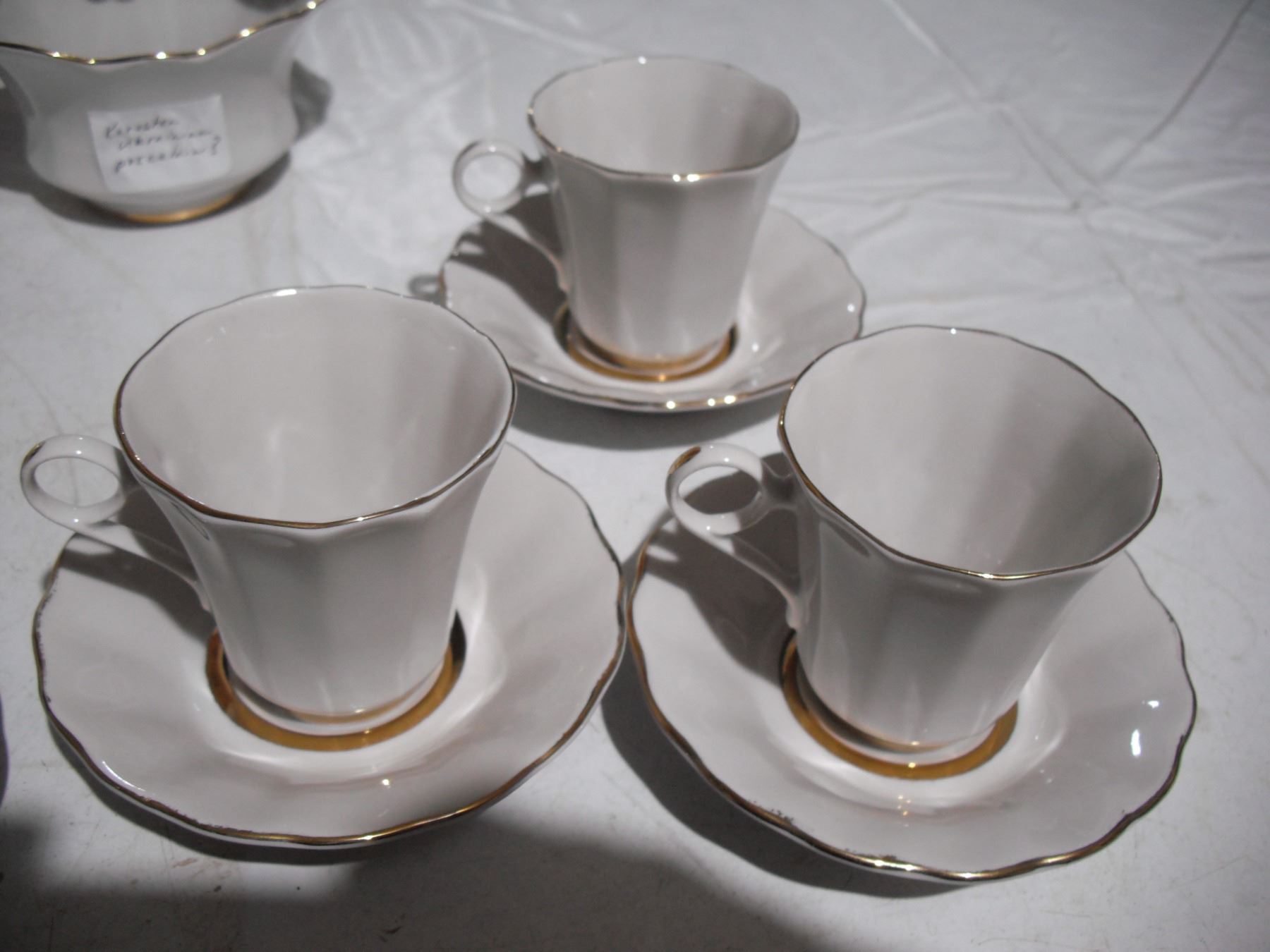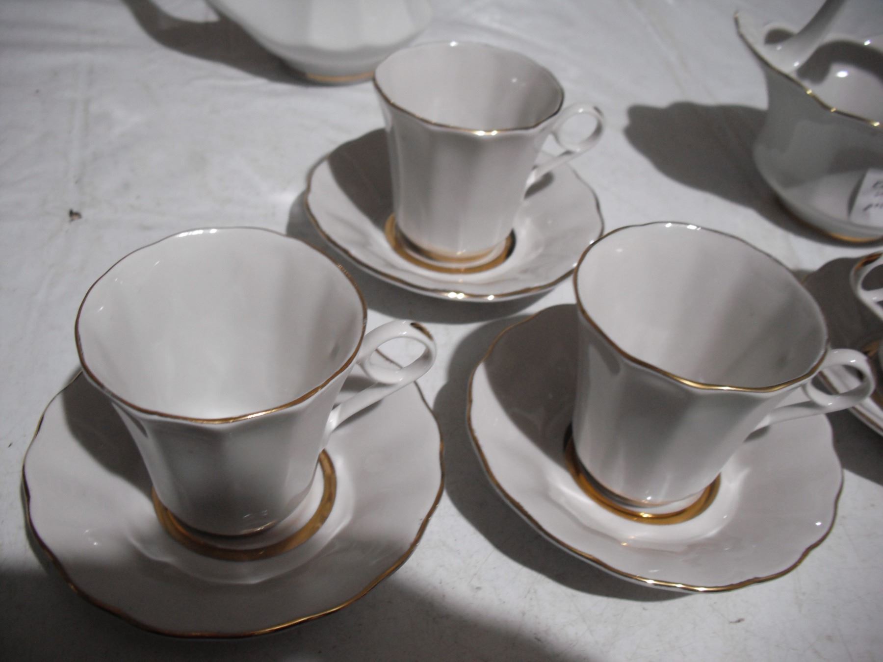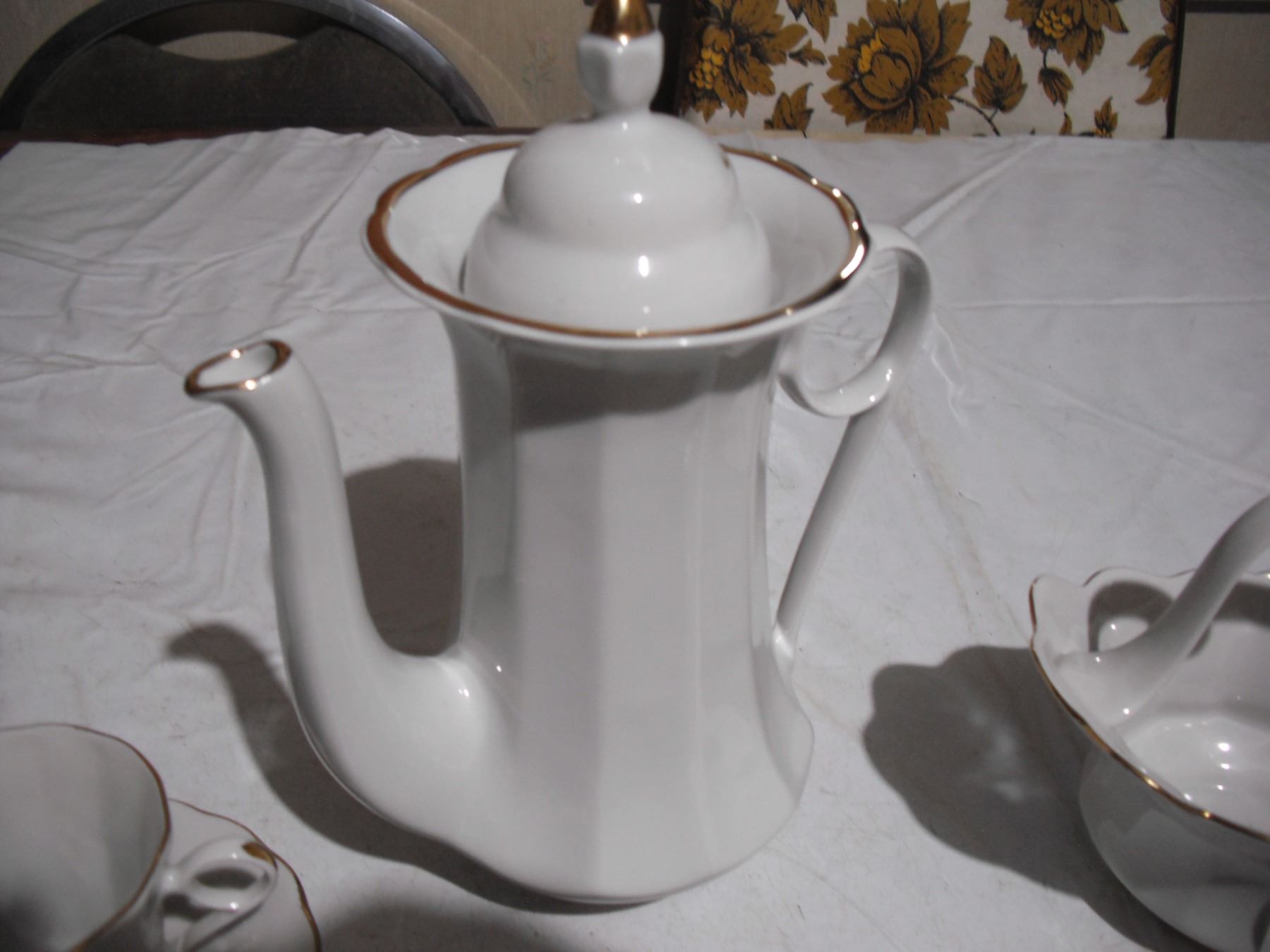 vintage ukrainian (korosten?) - tea pot, (6) cups, (6) sauces + candy dish basket (good condition)