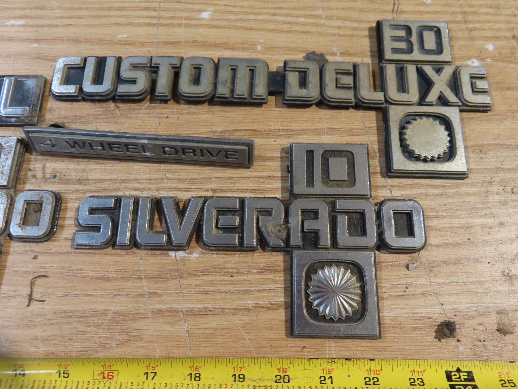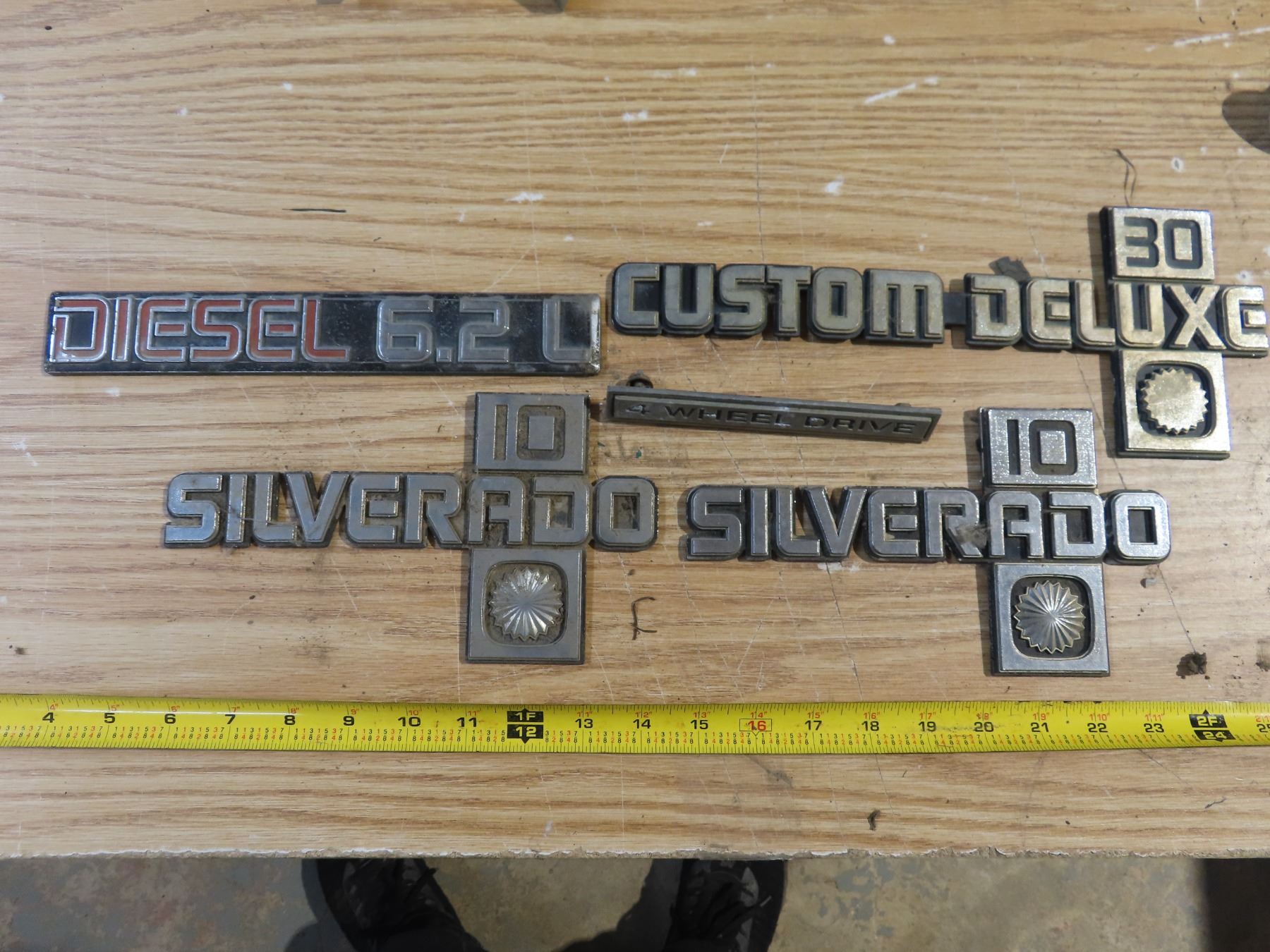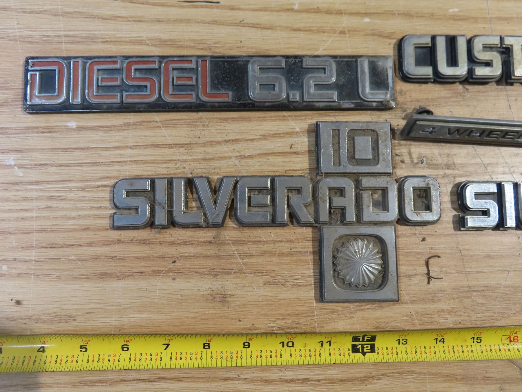 vintage vehicle badges - Silverado 10, Custom Deluxe 30, Diesel 6.2L, 4WD