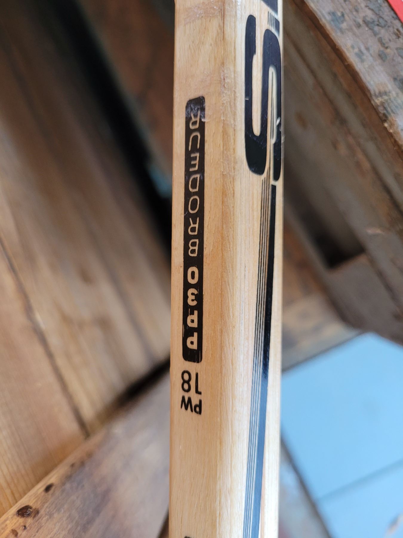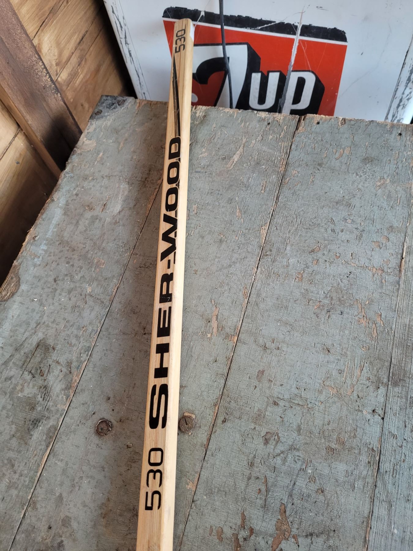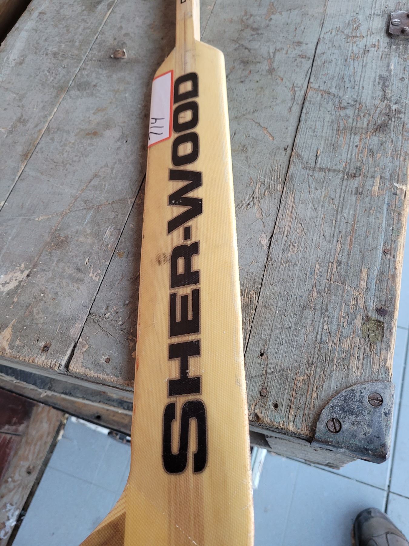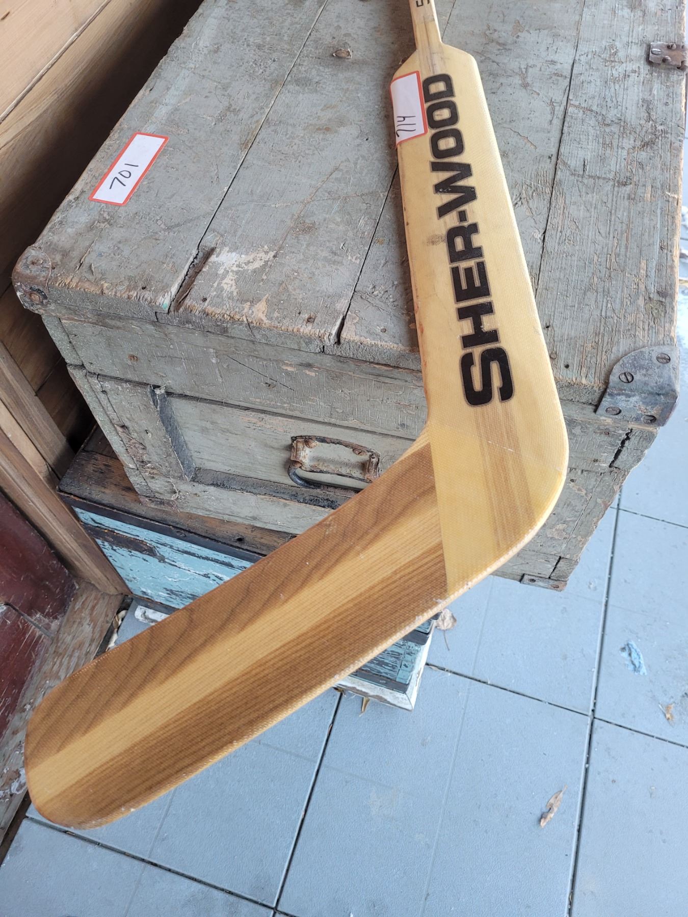 vintage wooden unused jr. goalie stock, sherwood, ed balfour