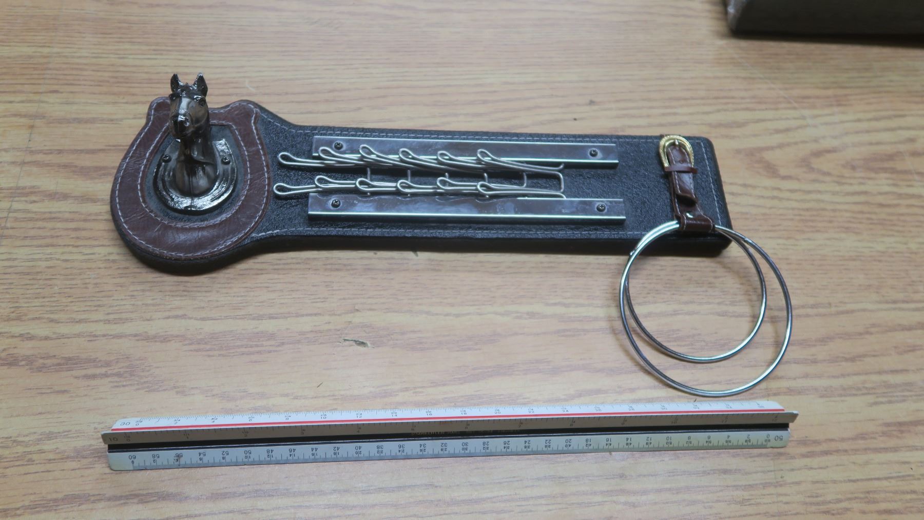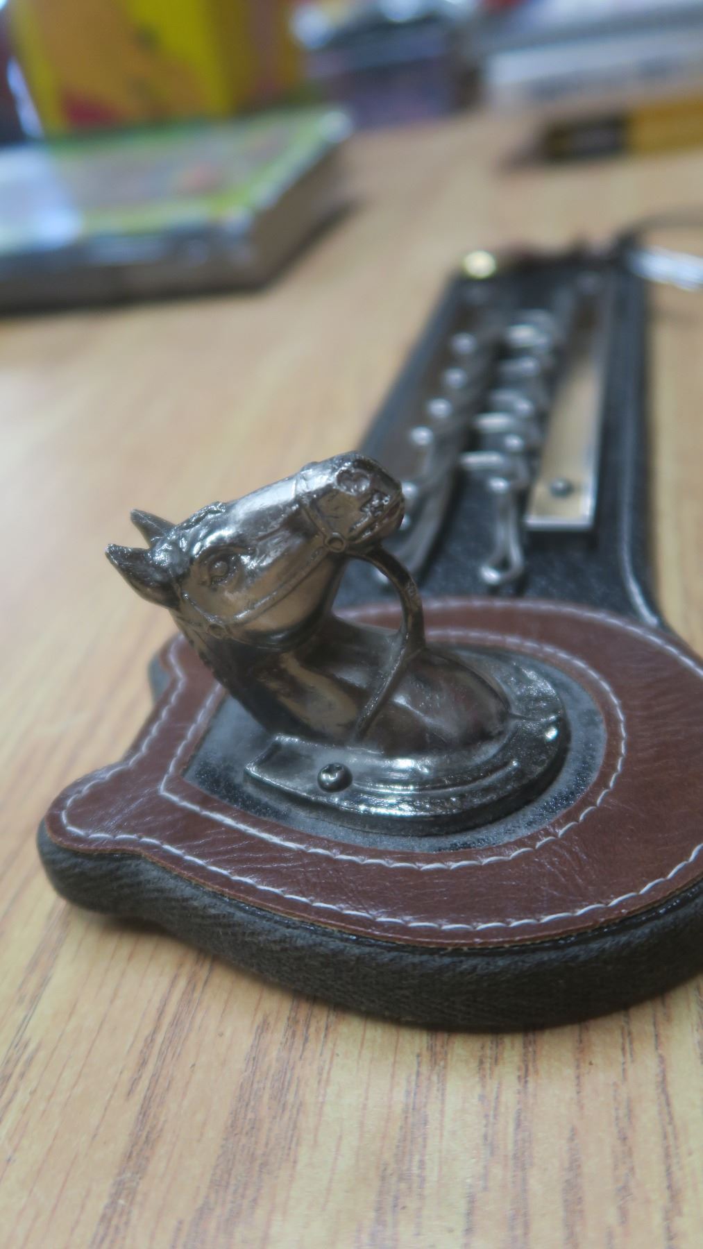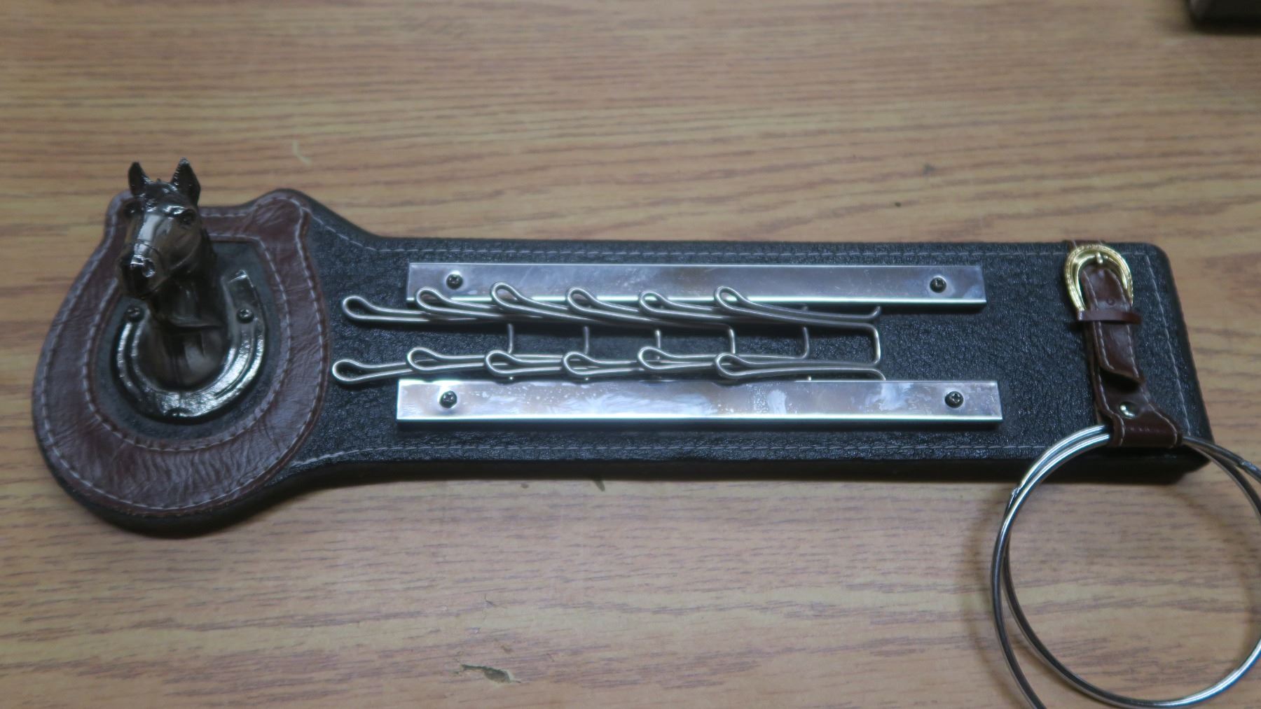 westren style key holder, leather with metal horse head.