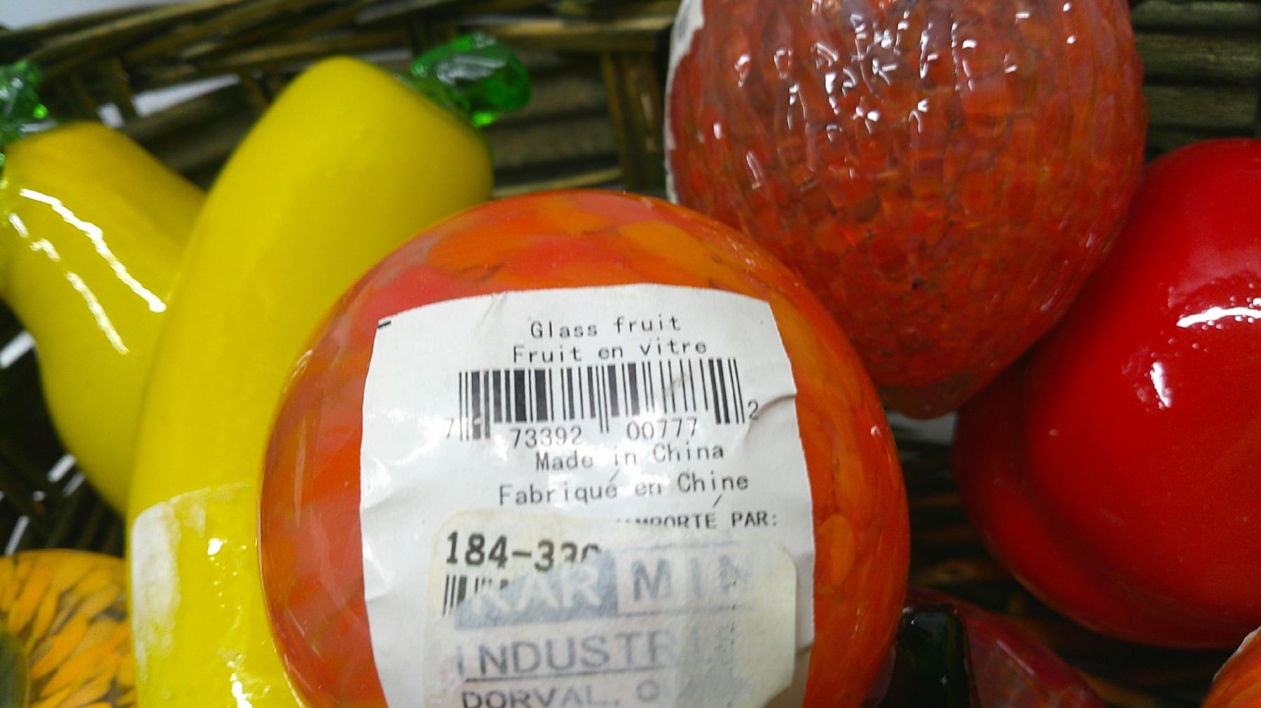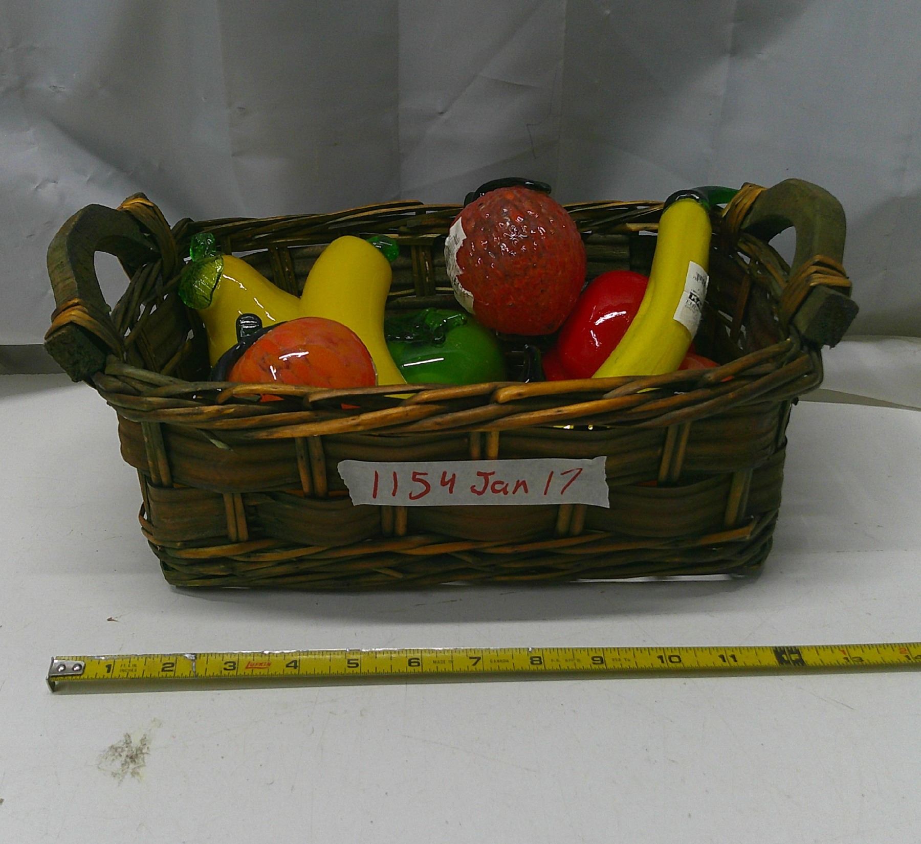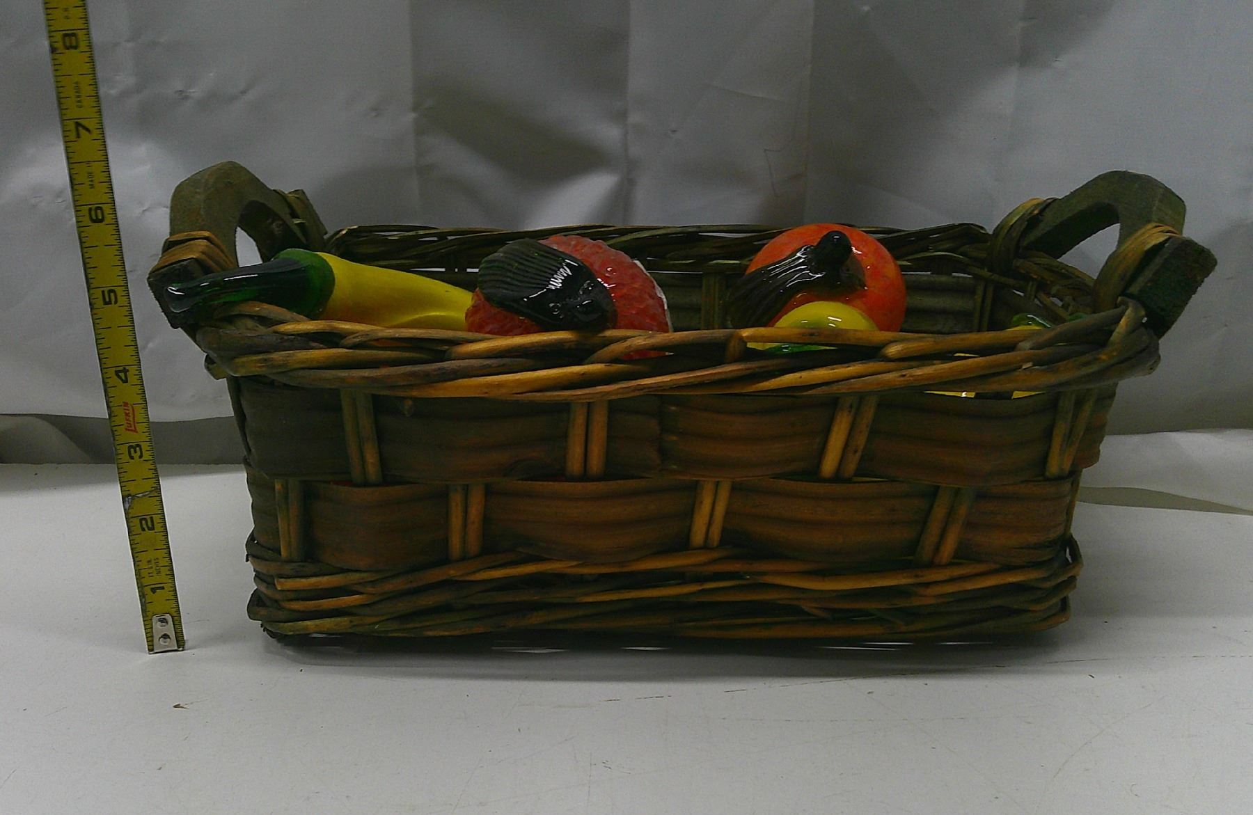 whicker fruit basket w/ glass fruit décor