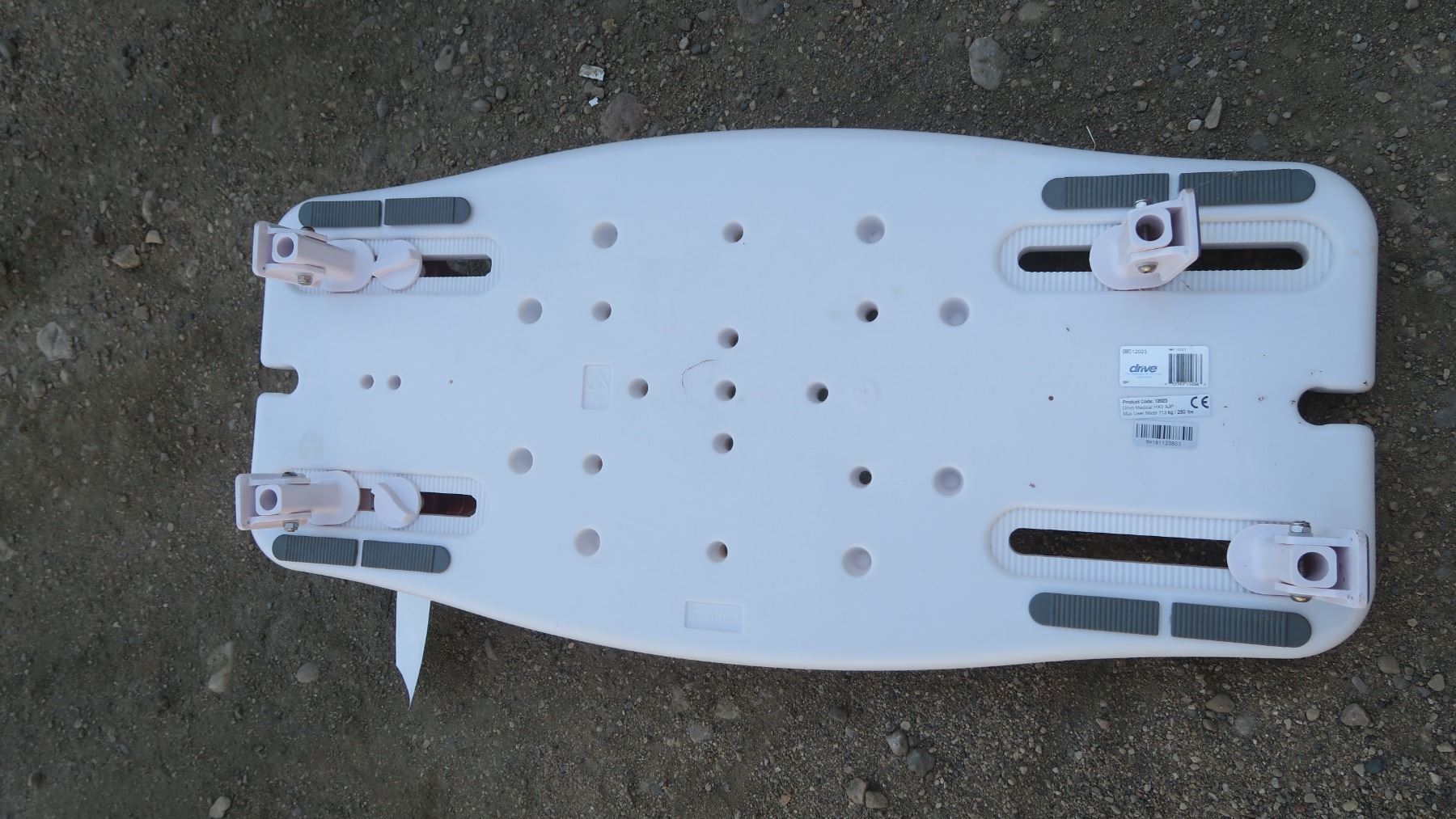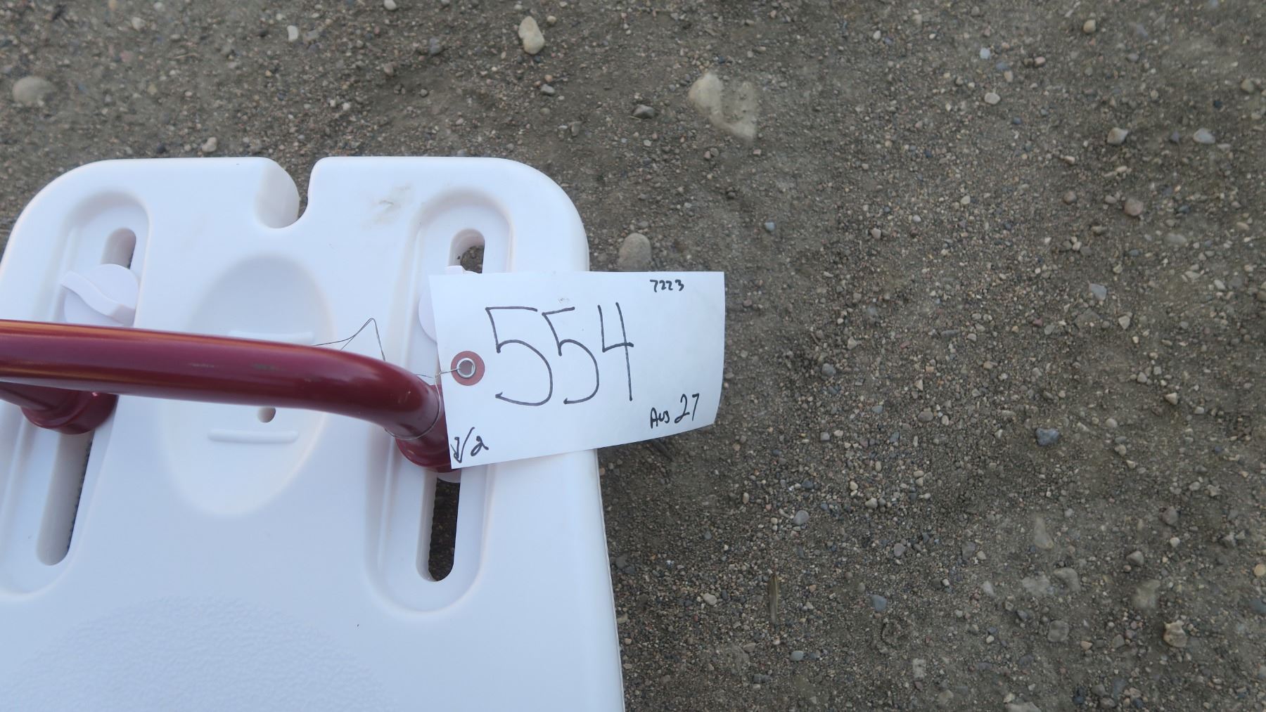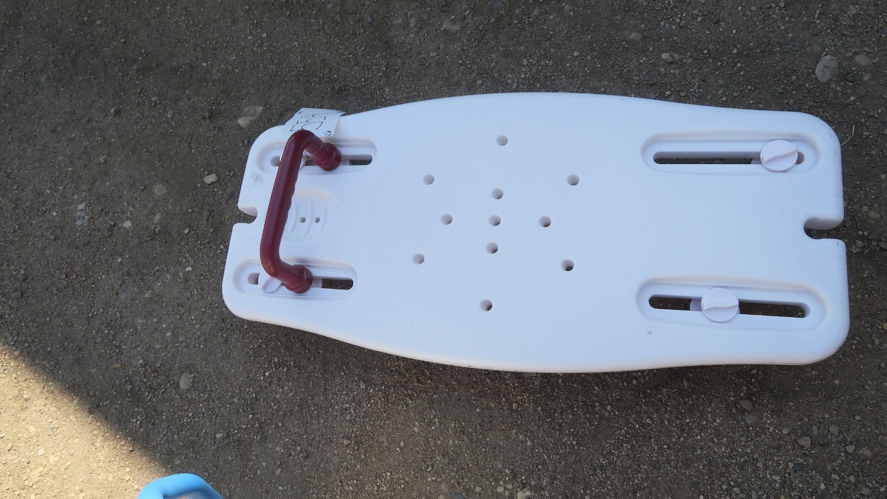 white shower seat, potty with handles.