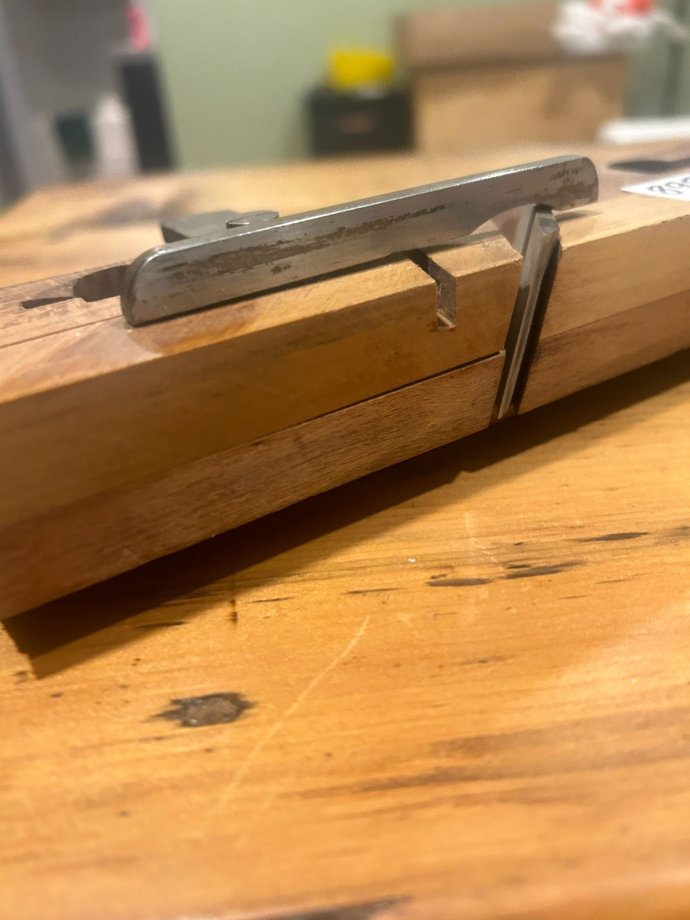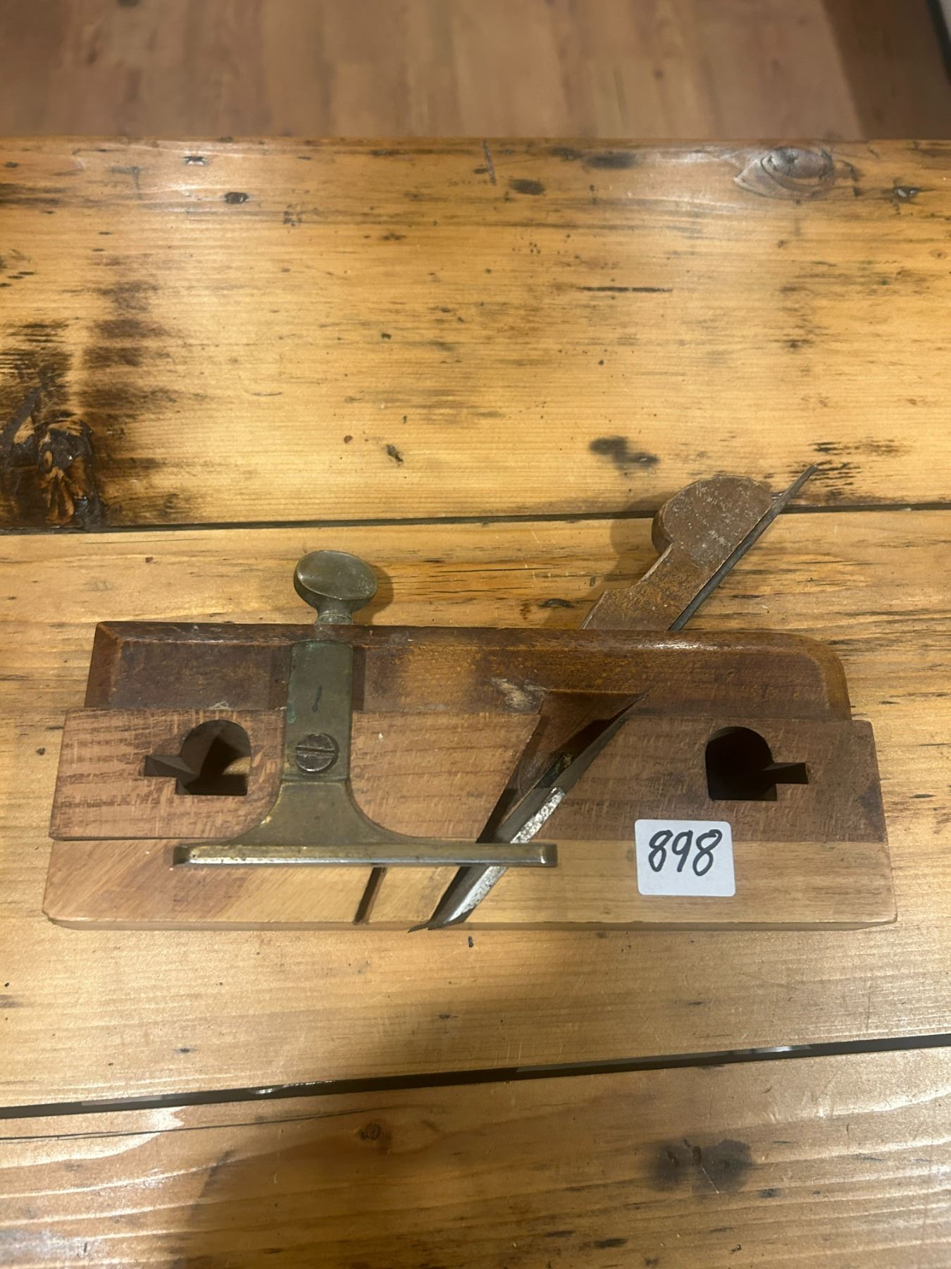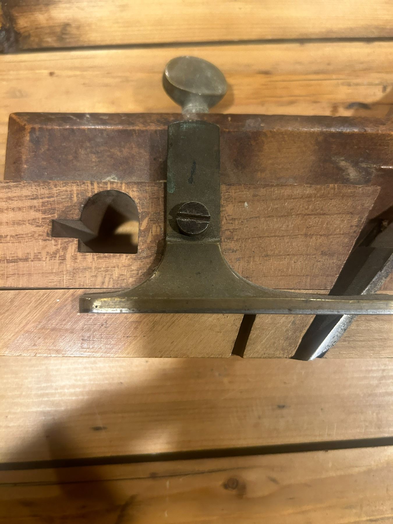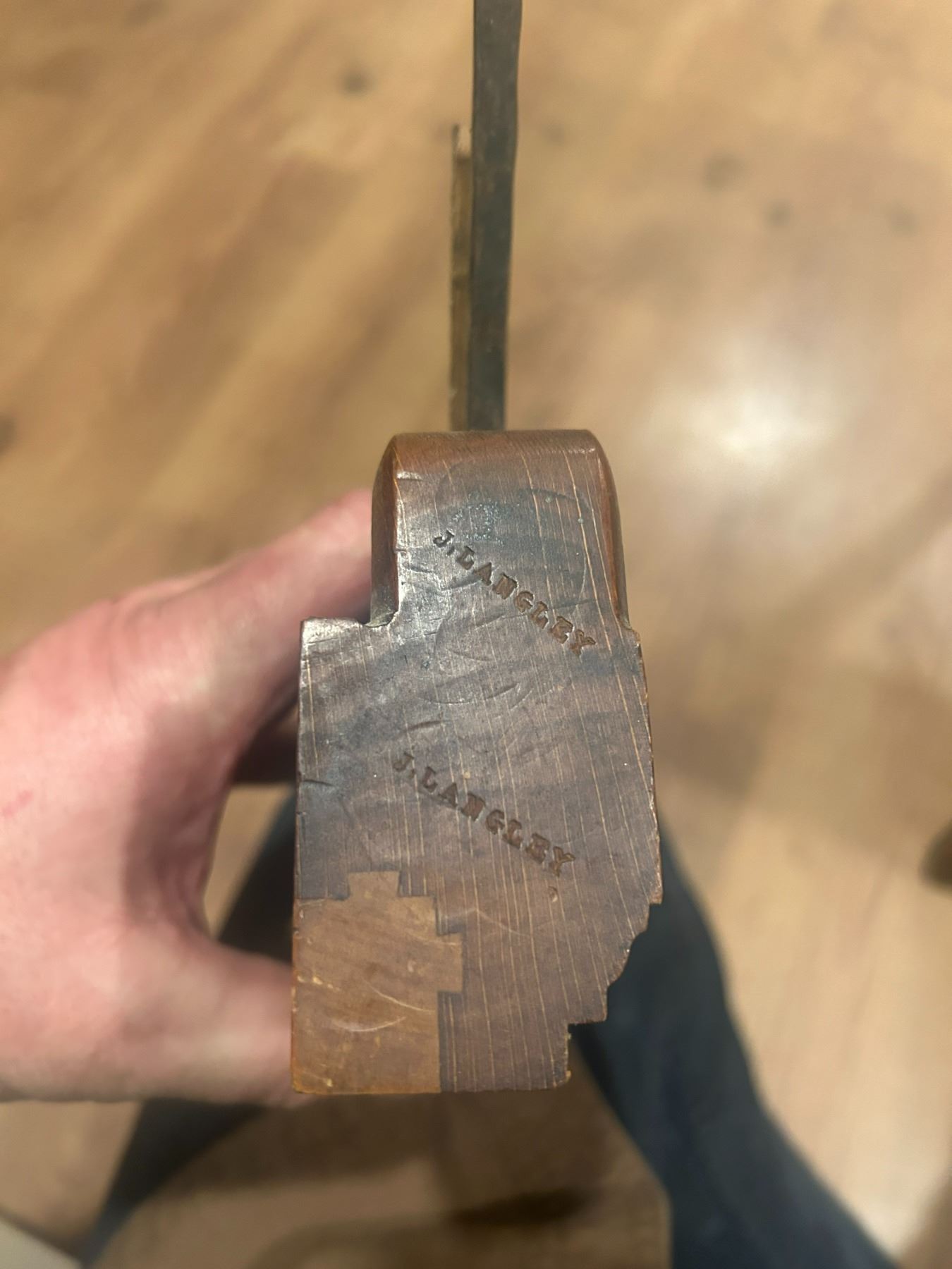 wooden moulding plane - complete, c/w brass hardware, 9" long - stamped "J. Langley"